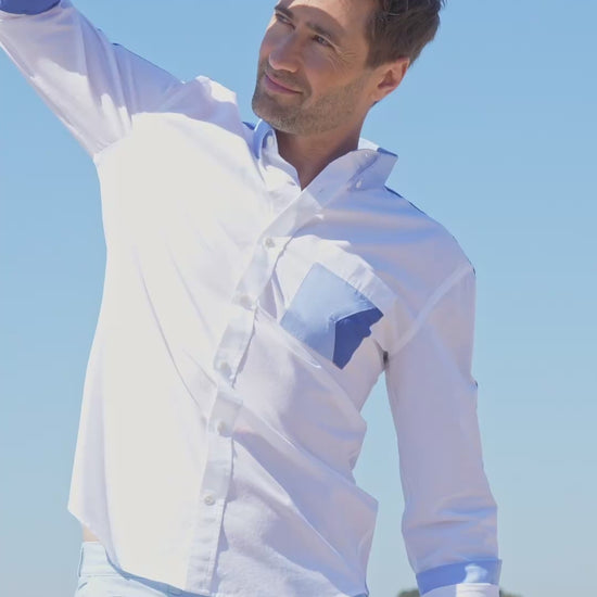 The name "Le Moulleau", a renowned suburb of Arcachon, for this nautical-inspired shirt, which displays its details like a sailboat unfurls its banners in the wind.