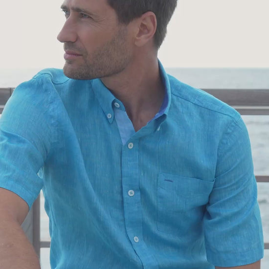 Riviera Azur short-sleeved linen shirt