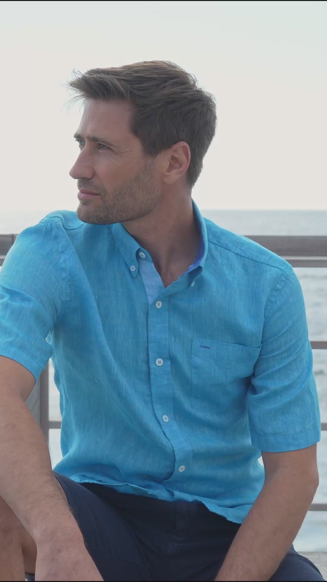 The name "Riviera", a coastal region of the Mediterranean Sea, for this linen shirt with careful details and an elegant, relaxed and timeless look.