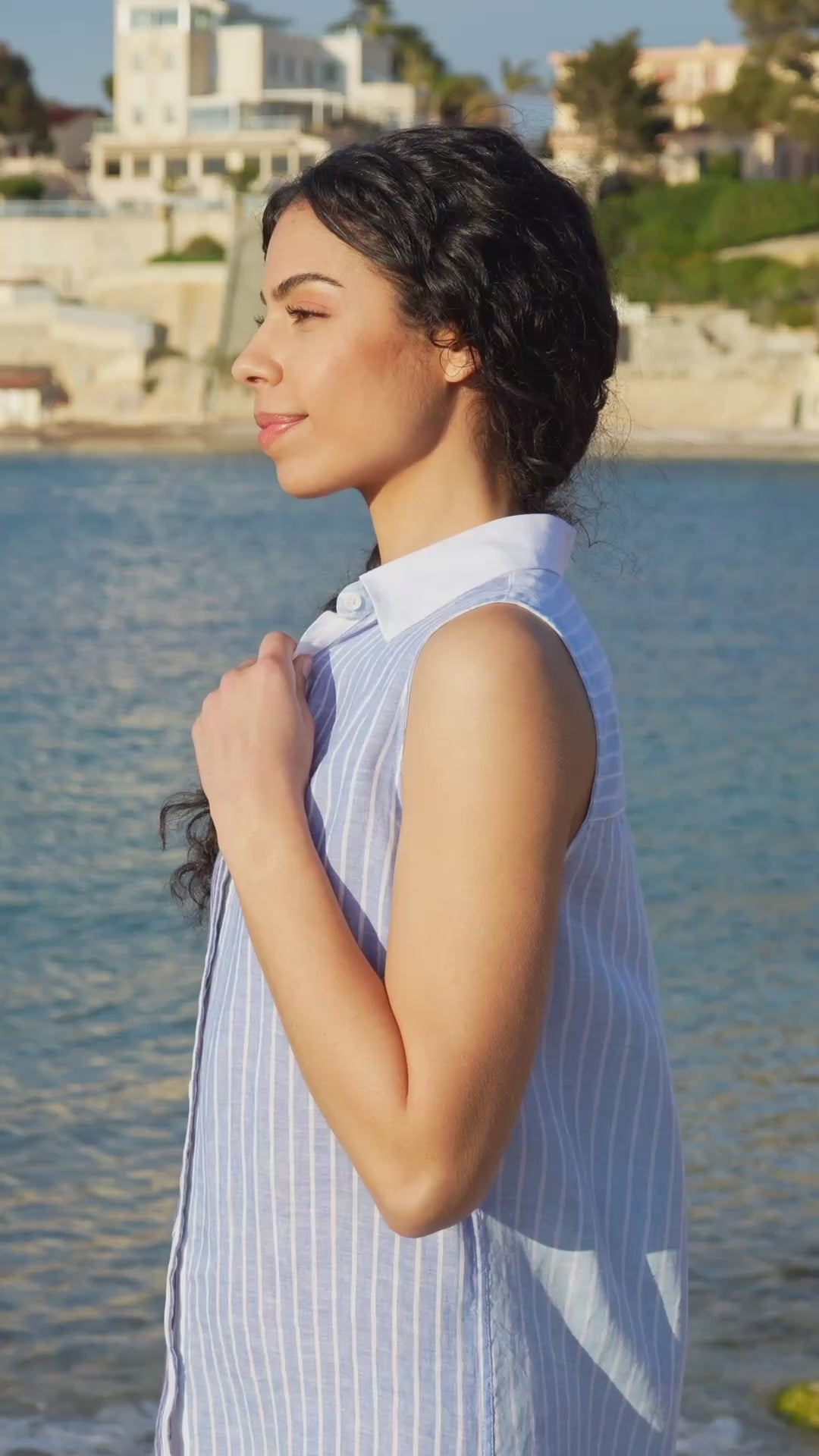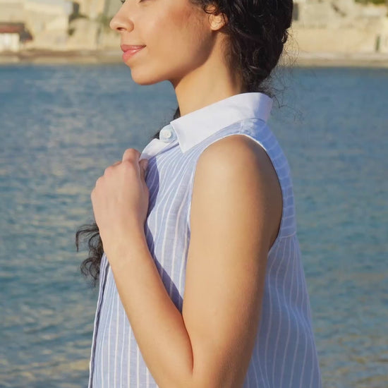 Mykonos Blue Stripes Sleeveless Linen Shirt Dress