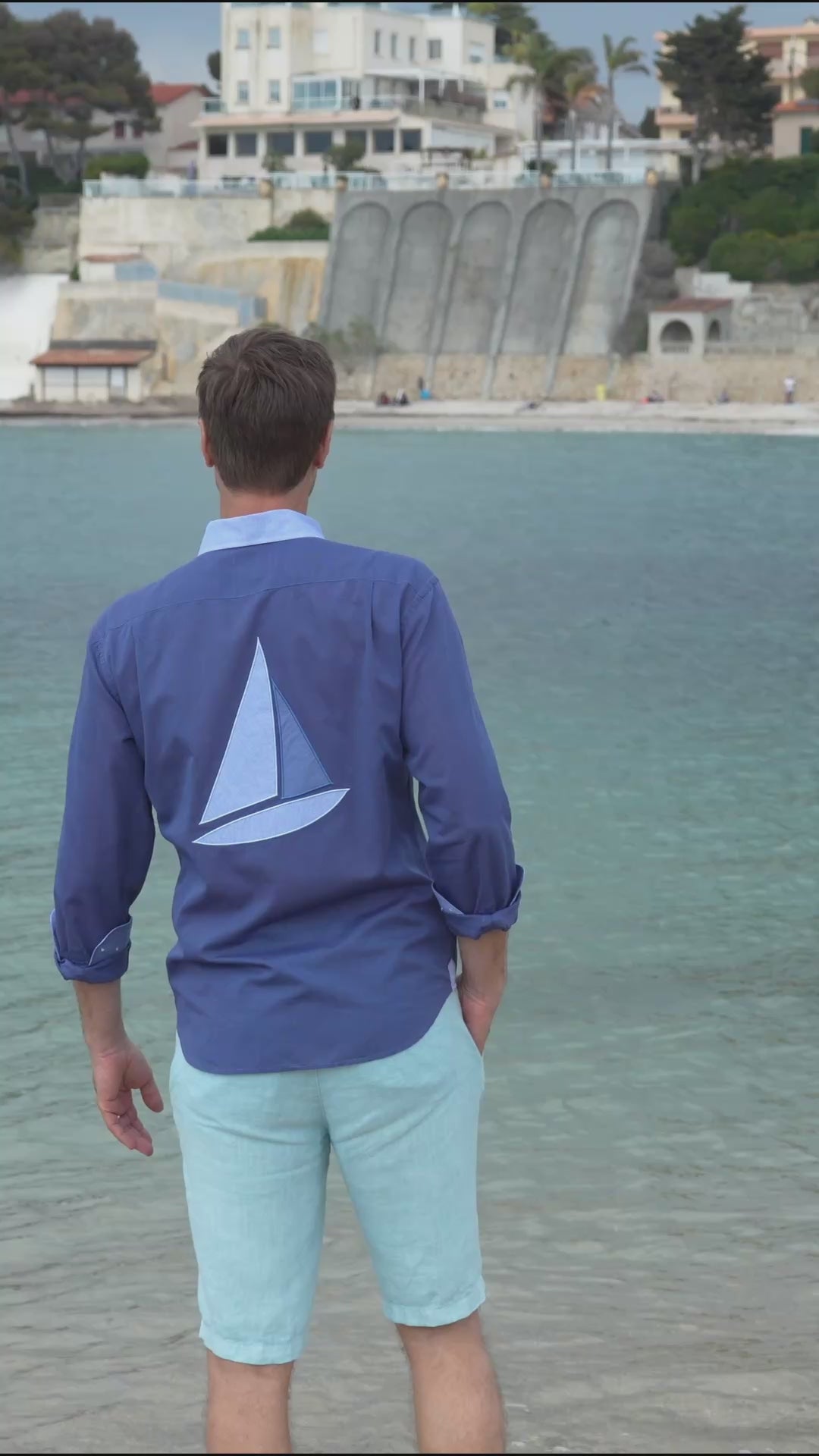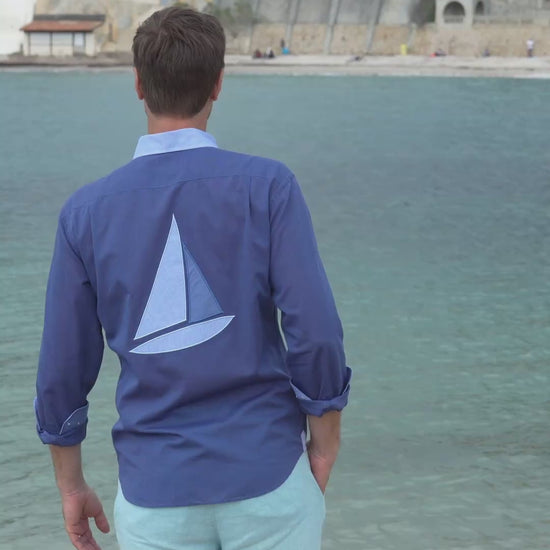 La dénomination « Wally », designer maritime basé à Monte-Carlo, pour cette chemise qui est un appel au grand large avec sa poche façon pavillon maritime et son voilier en coton contrasté dans le dos.